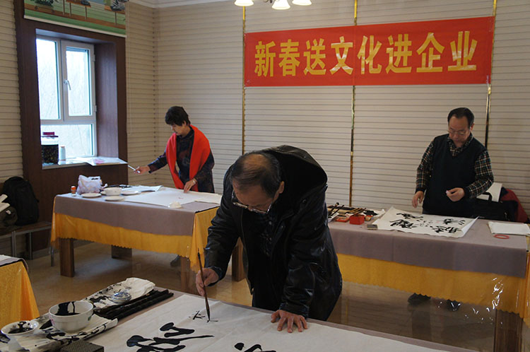 自治區(qū)老年書畫學(xué)會(huì)的老師為公司書寫創(chuàng)作字畫和新春對(duì)聯(lián)